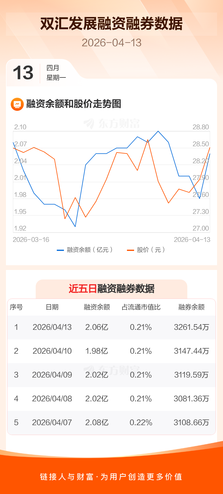 交易所最新数据显示,双汇发展于2026年4月13日获融资买入1672.33万元,融资偿还896.05万元,当日融资净买入776.28万元。目前,该股融资余额2.06亿,占流通市值比例为0.21%。