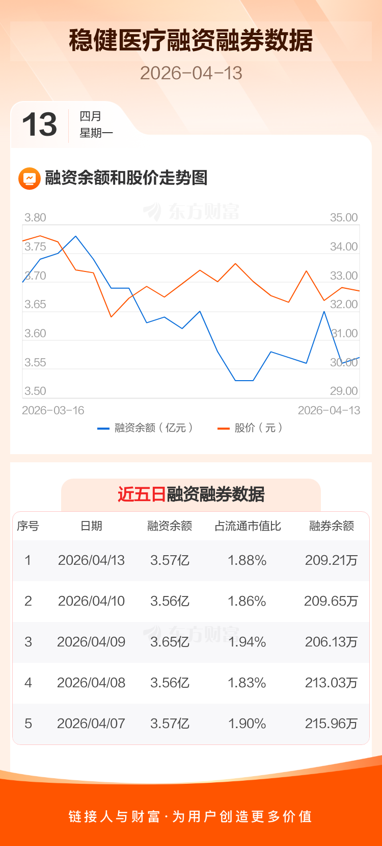 交易所最新数据显示,稳健医疗于2026年4月13日获融资买入466.31万元,融资偿还355.94万元,当日融资净买入110.38万元。目前,该股融资余额3.57亿,占流通市值比例为1.88%。