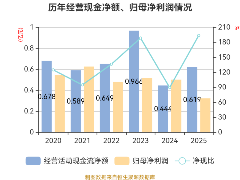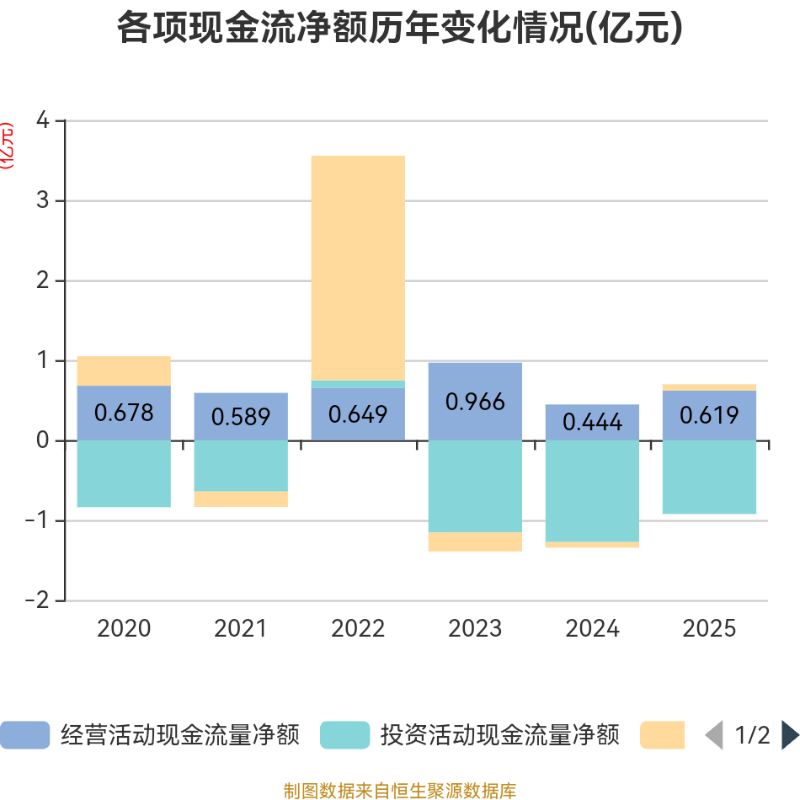 截至2025年,公司经营活动现金流净额为6190.26万元,同比增长39.32%;筹资活动现金流净额784.36万元,同比增加1470.96万元;投资活动现金流净额-9252.05万元,上年同期为-1.28亿元。