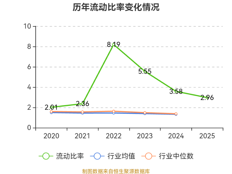 2025年,公司流动比率为2.96,速动比率为2.13。