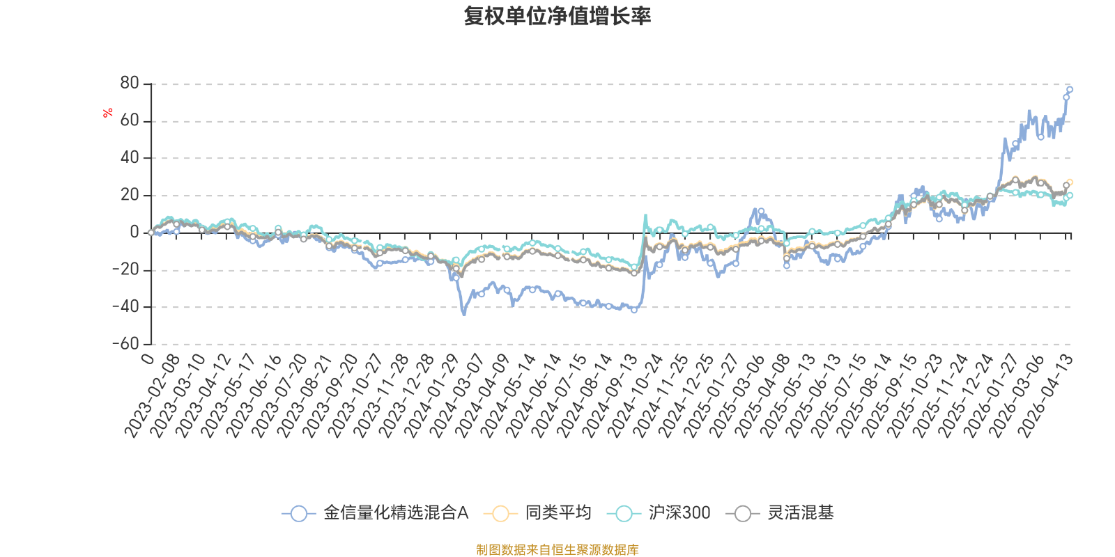截至4月13日,金信量化精选混合A近三个月复权单位净值增长率为24.06%,位于同类可比基金25/1287;近半年复权单位净值增长率为52.32%,位于同类可比基金11/1286;近一年复权单位净值增长率为103.56%,位于同类可比基金57/1286;近三年复权单位净值增长率为66.71%,位于同类可比基金95/1286。