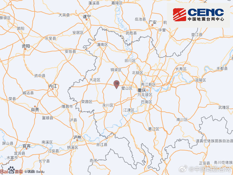 重庆铜梁区发生3.1级地震 震源深度8千米