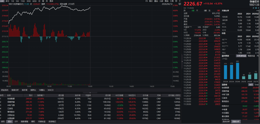 消息面上,隔夜美股市场存储概念龙头股之一的闪迪大涨,收盘涨幅接近12%,再次引发全球资本市场对存储概念股的追捧。