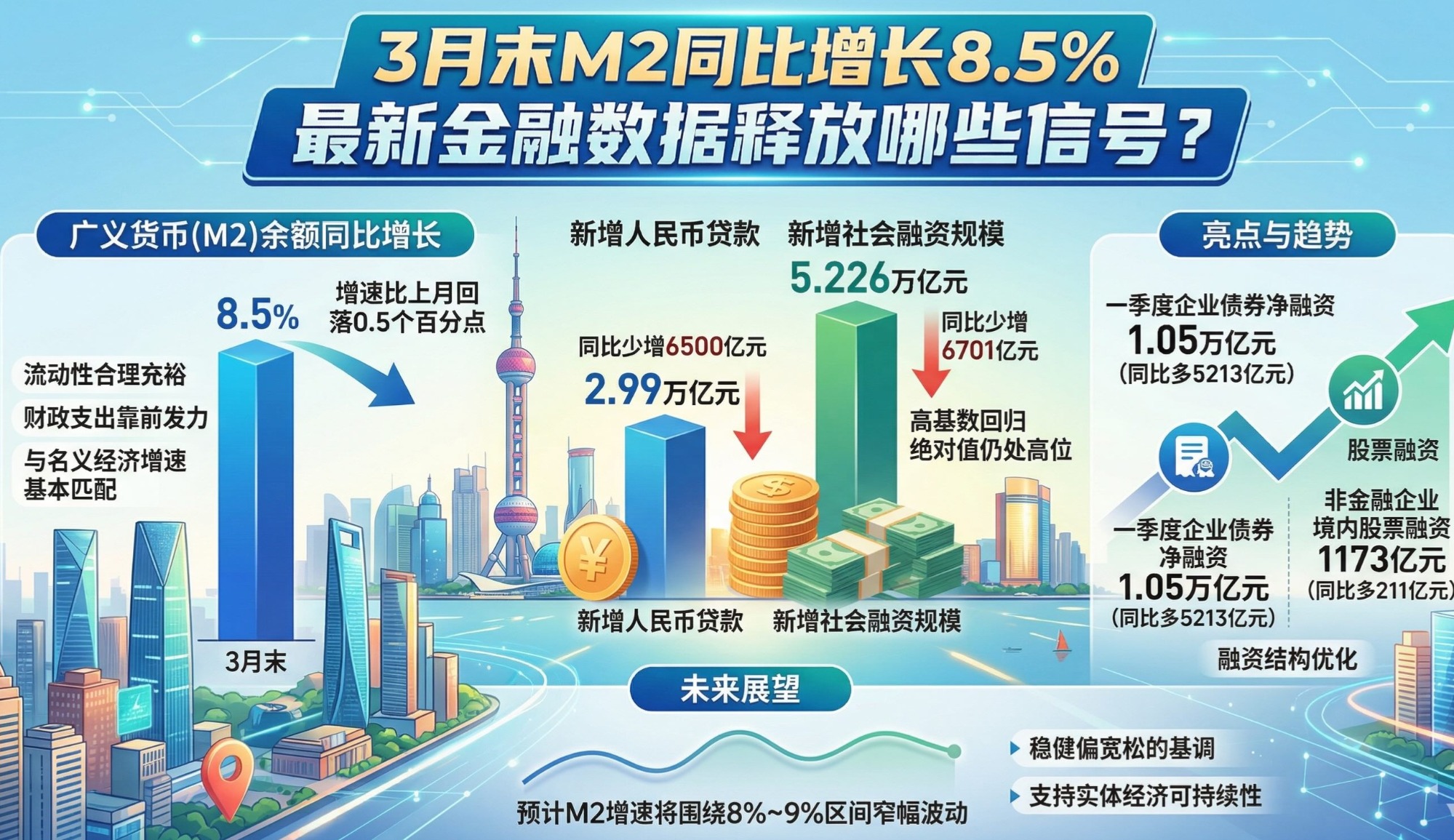 《中国经营报》记者注意到,3月末M2同比增速为8.5%,继续处于较高水平,是本月金融数据中的一大亮点。