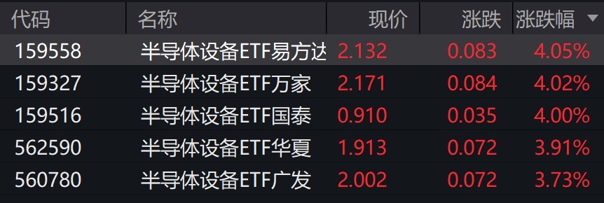 半导体概念股走强,半导体设备相关ETF涨约4%