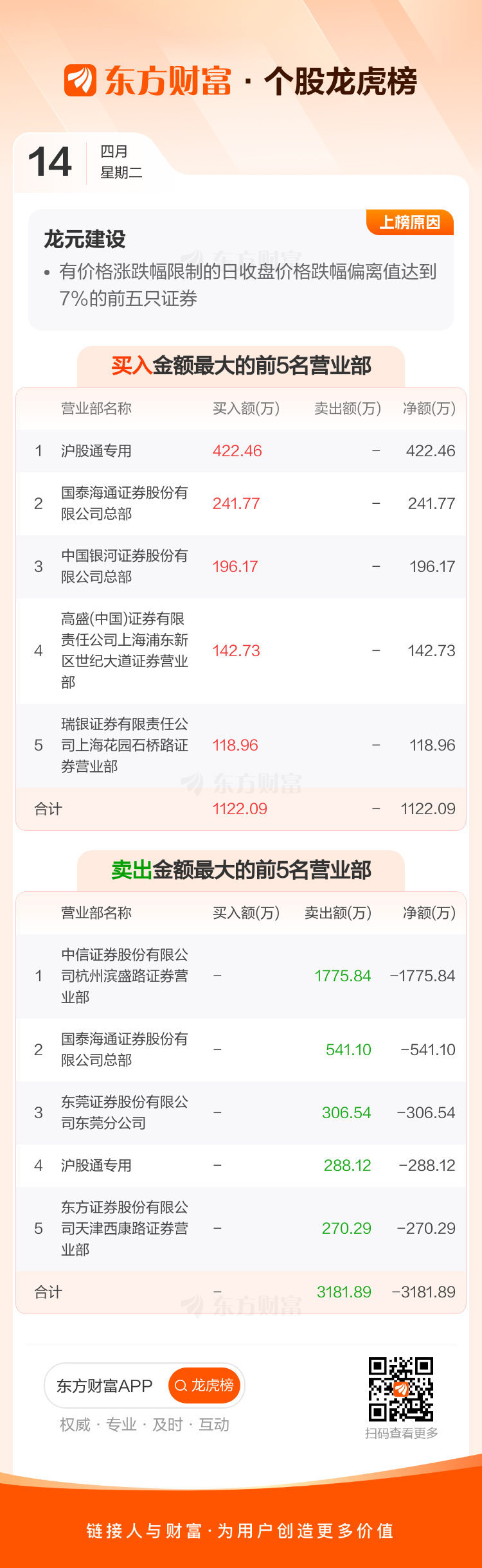 龙元建设(600491)龙虎榜数据(04-14)