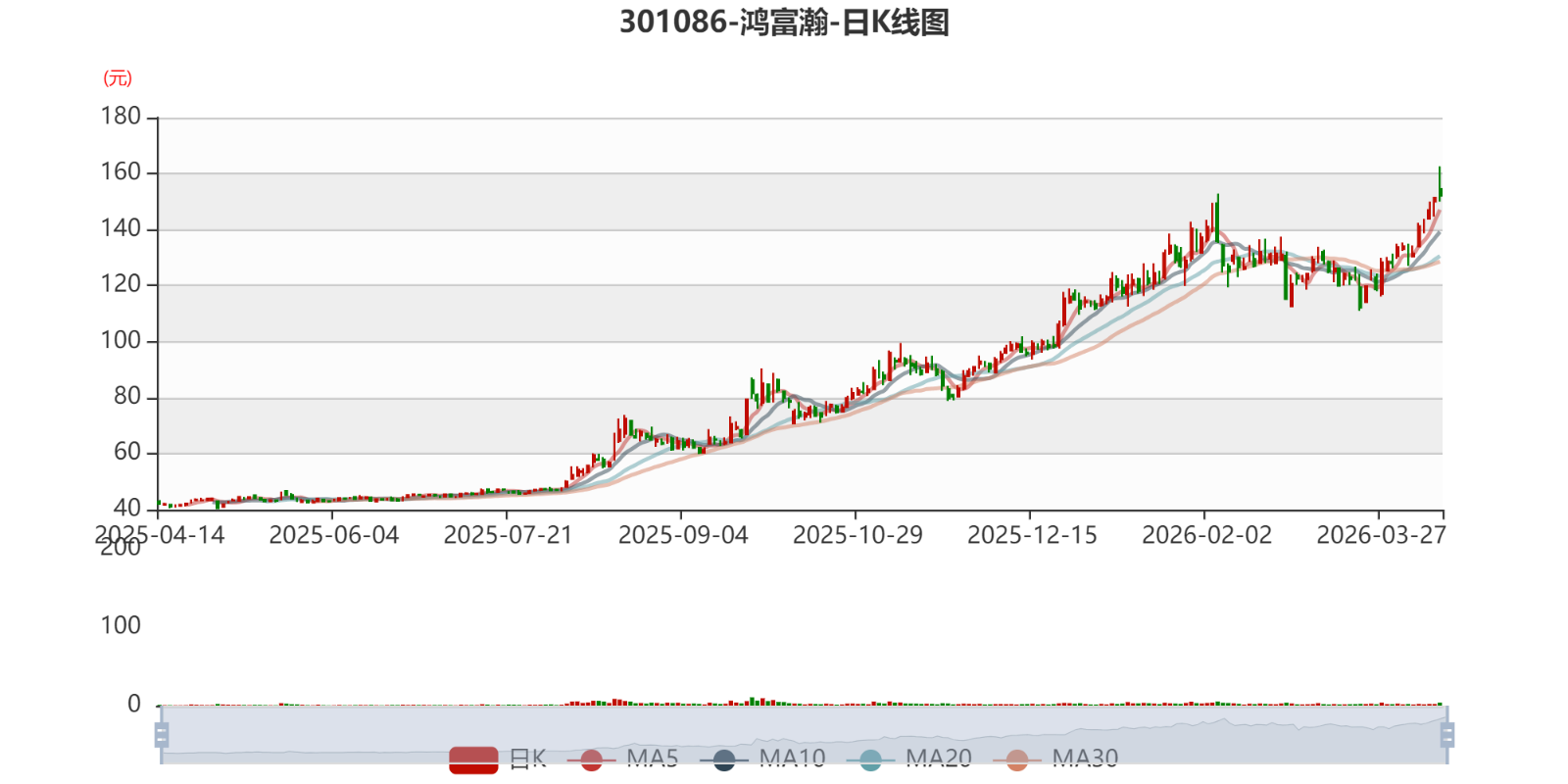 中证智能财讯鸿富瀚(301086)4月14日晚间披露业绩预告,预计2026年一季度归母净利润3500万元至4000万元,同比增长87.25%-114%;扣非净利润预计3200万元至3700万元,同比增长83.09%-111.7%。以4月14日收盘价计算,鸿富瀚目前市盈率(TTM)约为111.53倍-116.26倍,市净率(LF)约7.09倍,市销率(TTM)约15.81倍。