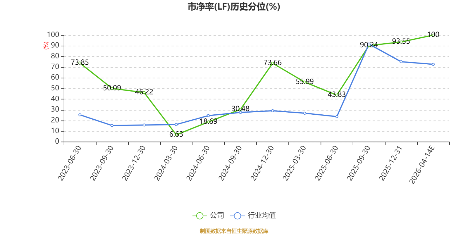 市盈率、市净率为负时,不显示当期分位数,会导致折线图中断。