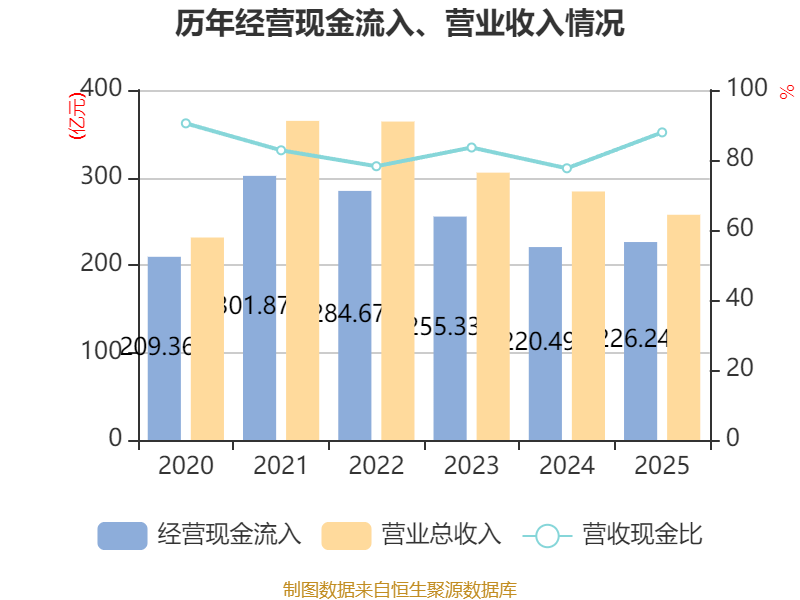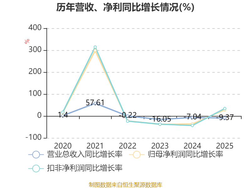 中证智能财讯鄂尔多斯(600295)4月15日披露2025年年度报告。2025年,公司实现营业总收入257.41亿元,同比下降9.37%;归母净利润23.63亿元,同比增长27.93%;扣非净利润21.73亿元,同比增长33.93%;经营活动产生的现金流量净额为45.18亿元,同比增长0.06%;报告期内,鄂尔多斯基本每股收益为0.84元,加权平均净资产收益率为11.06%。公司2025年度分配预案为:拟向全体股东每10股派现7元(含税)。