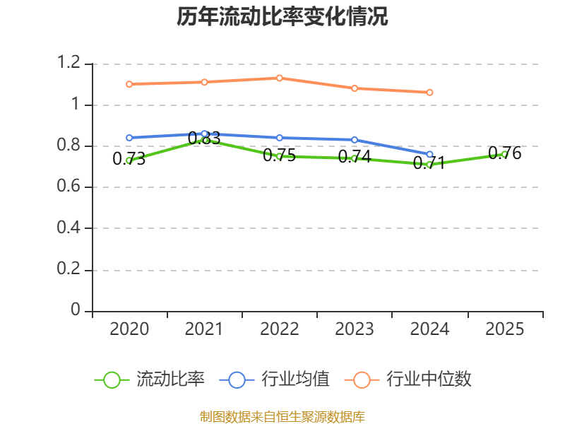 2025年,公司流动比率为0.76,速动比率为0.51。