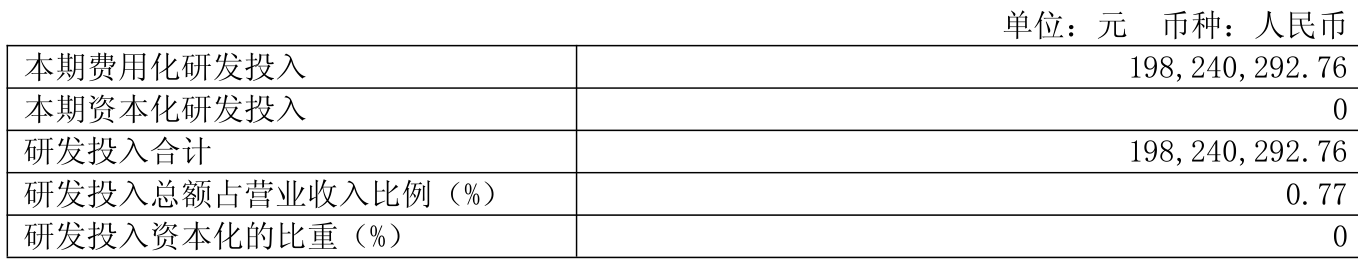 2025年全年,公司研发投入金额为1.98亿元,同比增长11.04%;研发投入占营业收入比例为0.77%,相比上年同期上升0.14个百分点。此外,公司全年研发投入资本化率为0%。