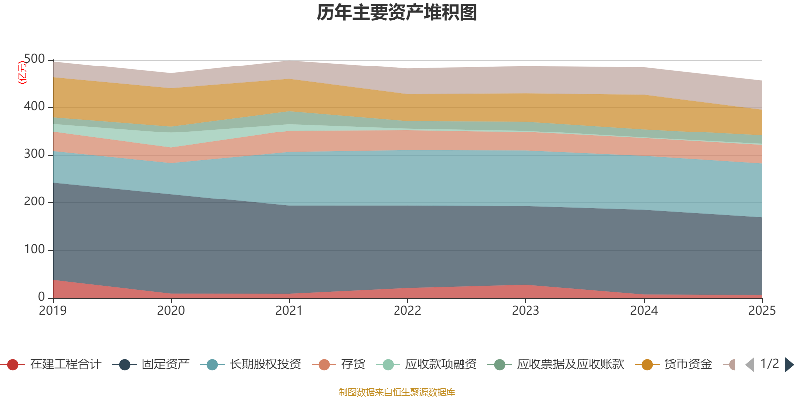 资产重大变化方面,截至2025年末,公司货币资金较上年末减少25.19%,占公司总资产比重下降3.1个百分点;长期股权投资较上年末减少0.21%,占公司总资产比重上升1.38个百分点;固定资产较上年末减少8.13%,占公司总资产比重下降0.92个百分点;存货较上年末增加4.1%,占公司总资产比重上升0.81个百分点。