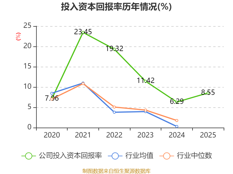 数据显示,2025年公司加权平均净资产收益率为11.06%,较上年同期上升2.31个百分点。公司2025年投入资本回报率为8.55%,较上年同期上升2.26个百分点。