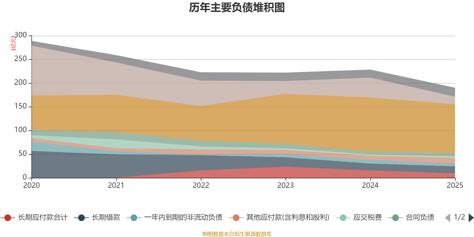 负债重大变化方面,截至2025年末,公司短期借款较上年末减少61.78%,占公司总资产比重下降5.12个百分点;长期应付款合计较上年末减少39.9%,占公司总资产比重下降1.16个百分点;应付票据及应付账款较上年末减少9.92%,占公司总资产比重下降1.05个百分点;其他应付款(含利息和股利)较上年末增加45.83%,占公司总资产比重上升0.93个百分点。