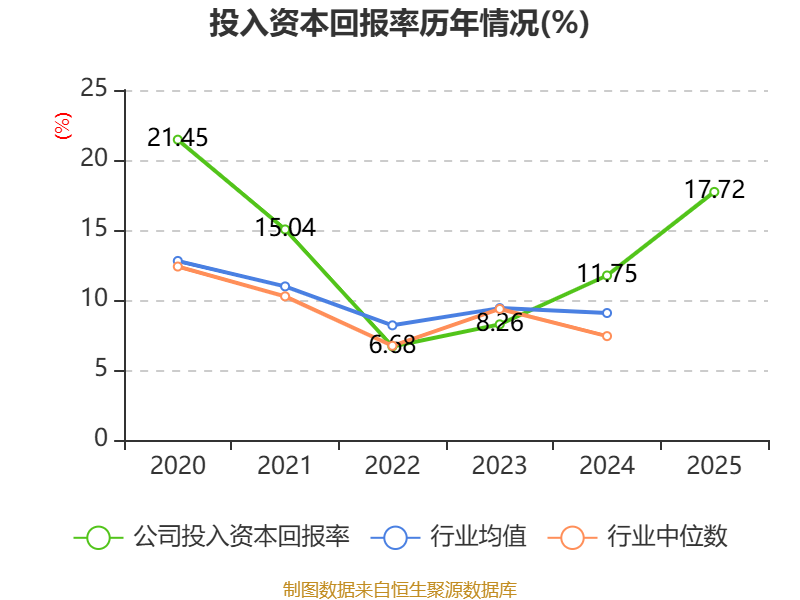 数据显示,2025年公司加权平均净资产收益率为19.11%,较上年同期上升6.23个百分点。公司2025年投入资本回报率为17.72%,较上年同期上升5.97个百分点。