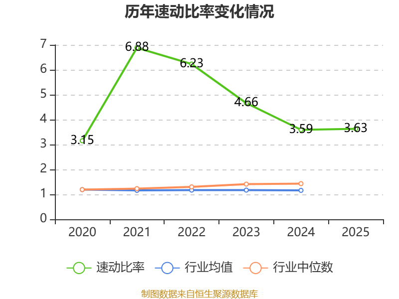 2025年,公司流动比率为4.15,速动比率为3.63。