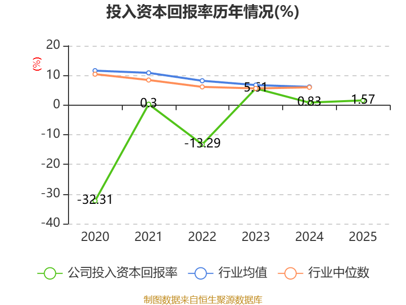 数据显示,2025年公司加权平均净资产收益率为1.49%,较上年同期上升3.52个百分点。公司2025年投入资本回报率为1.57%,较上年同期上升0.74个百分点。