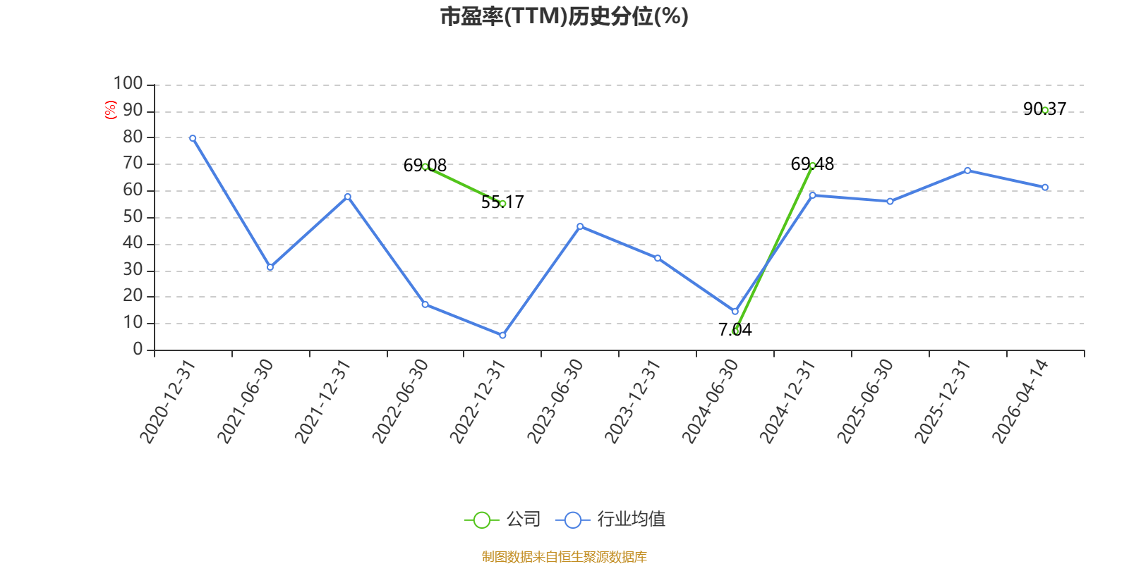 市盈率、市净率为负时,不显示当期分位数,会导致折线图中断。