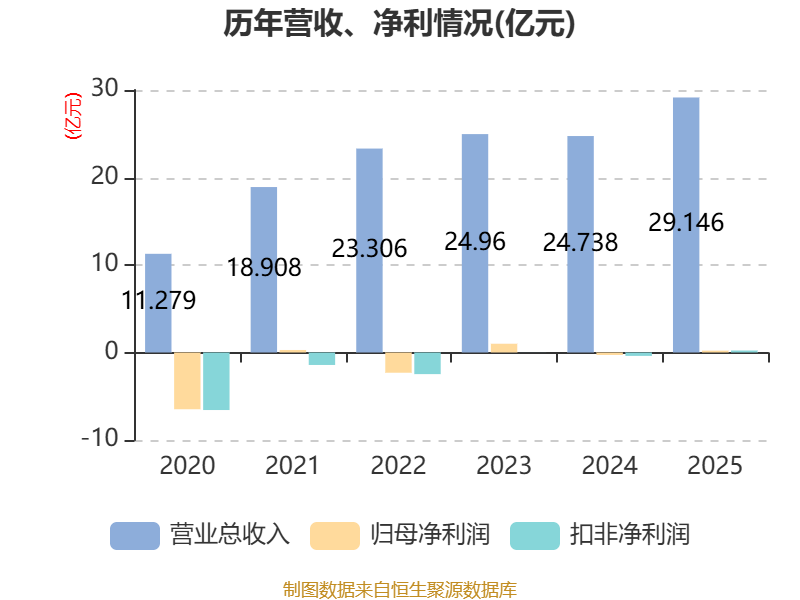 中证智能财讯方正电机(002196)4月15日披露2025年年度报告。2025年,公司实现营业总收入29.15亿元,同比增长17.82%;归母净利润2100.97万元,同比扭亏;扣非净利润2263.54万元,同比扭亏;经营活动产生的现金流量净额为1.15亿元,同比下降63.45%;报告期内,方正电机基本每股收益为0.0423元,加权平均净资产收益率为1.49%。