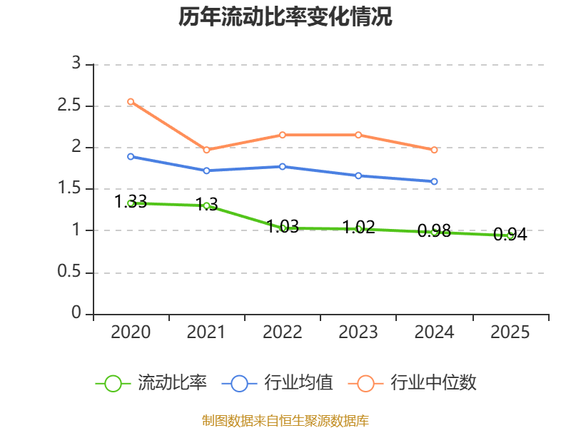 2025年,公司流动比率为0.94,速动比率为0.8。