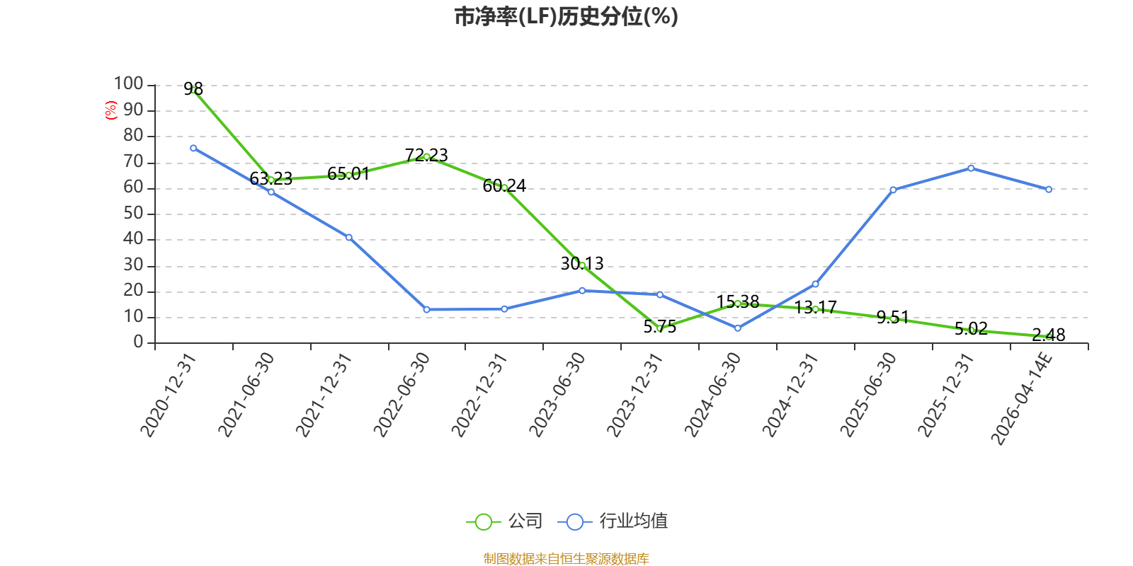 市盈率、市净率为负时,不显示当期分位数,会导致折线图中断。