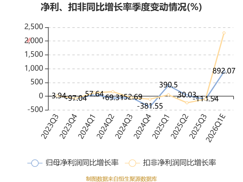 恒星科技:预计2026年一季度净利同比增长693.65%-1090.48%