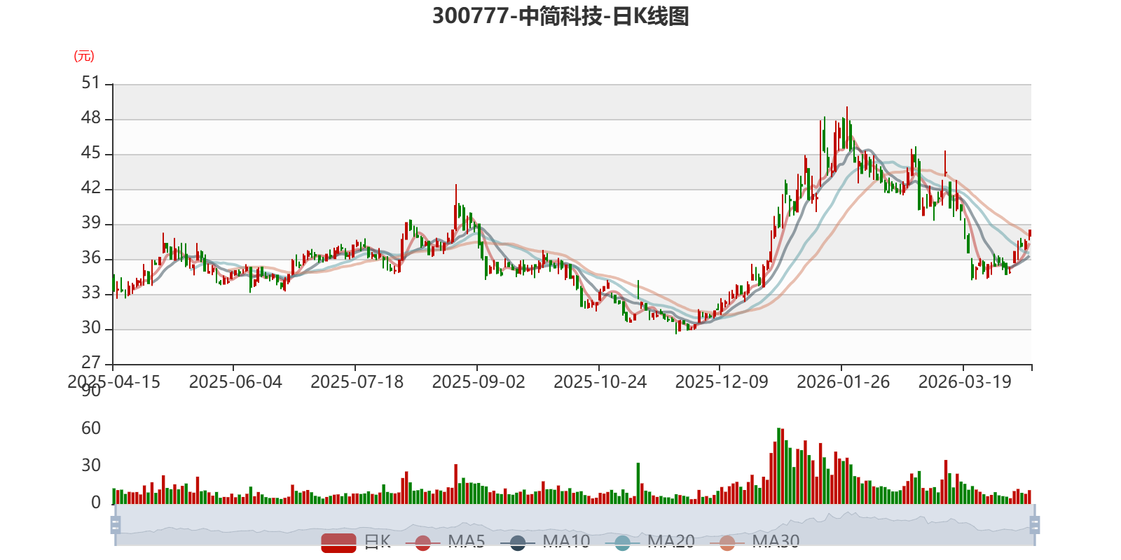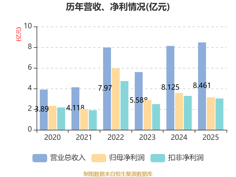 中证智能财讯中简科技(300777)4月15日披露2025年年度报告。2025年,公司实现营业总收入8.46亿元,同比增长4.14%;归母净利润3.15亿元,同比下降11.65%;扣非净利润3.03亿元,同比下降7.59%;经营活动产生的现金流量净额为8.8亿元,同比增长342.37%;报告期内,中简科技基本每股收益为0.72元,加权平均净资产收益率为7.13%。公司2025年度分配预案为:拟向全体股东每10股派现2.28元(含税)。