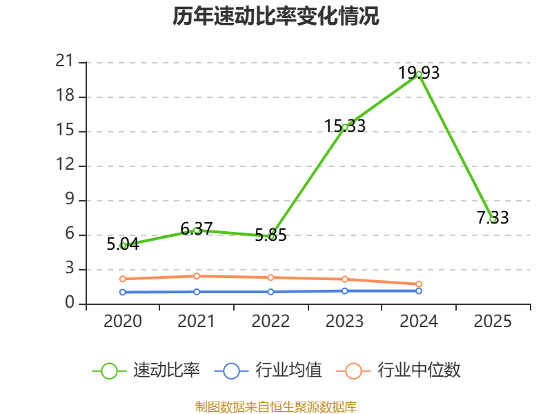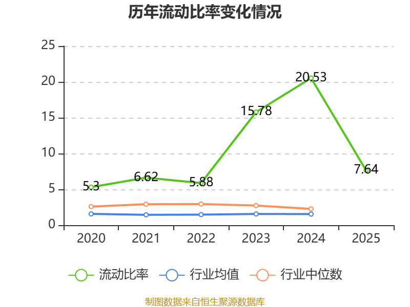 2025年,公司流动比率为7.64,速动比率为7.33。