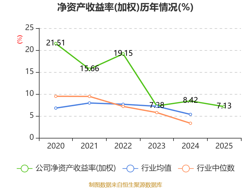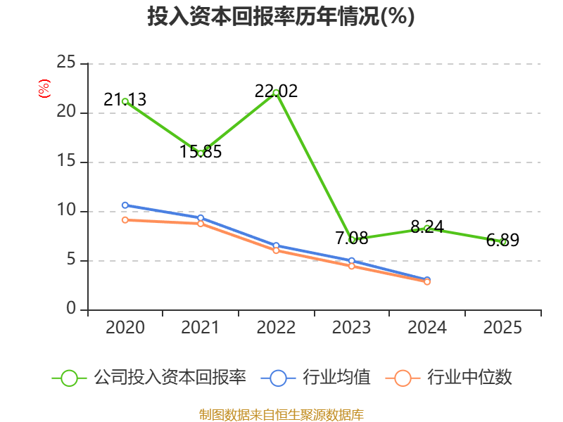 数据显示,2025年公司加权平均净资产收益率为7.13%,较上年同期下降1.29个百分点。公司2025年投入资本回报率为6.89%,较上年同期下降1.35个百分点。