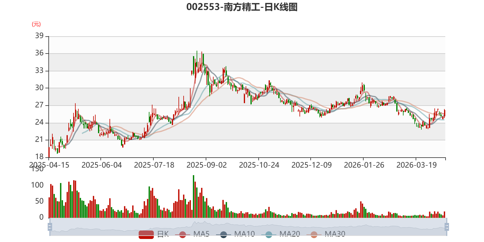 以4月14日收盘价计算,南方精工目前市盈率(TTM)约为26.74倍,市净率(LF)约5.88倍,市销率(TTM)约10.82倍。