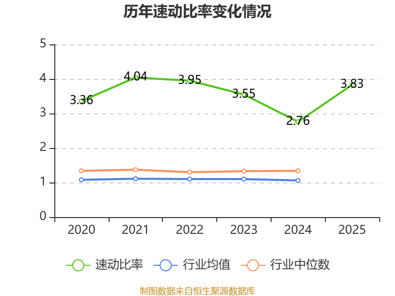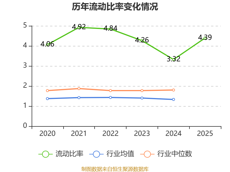 2025年,公司流动比率为4.39,速动比率为3.83。