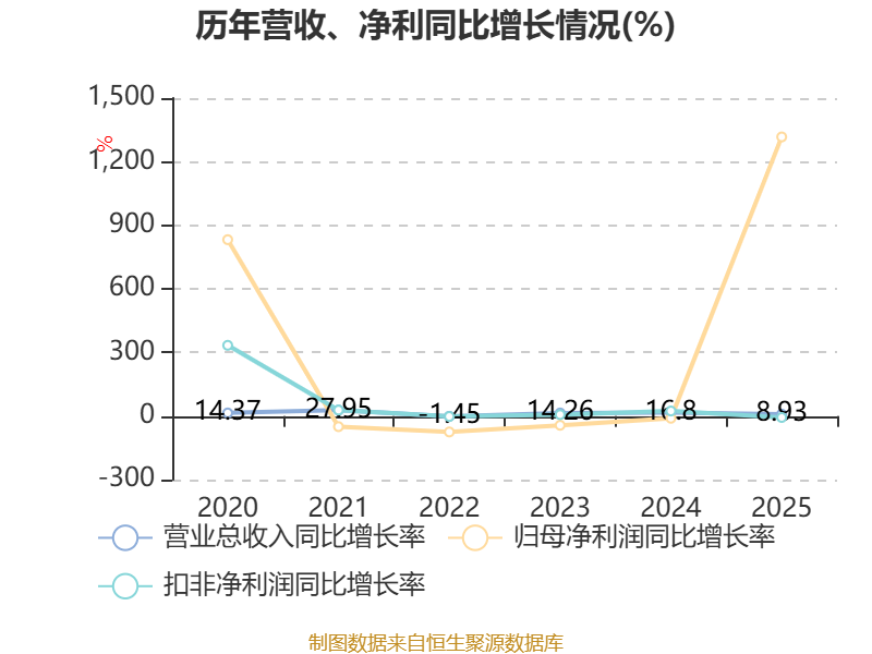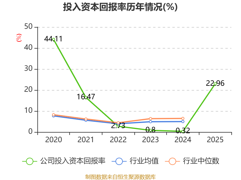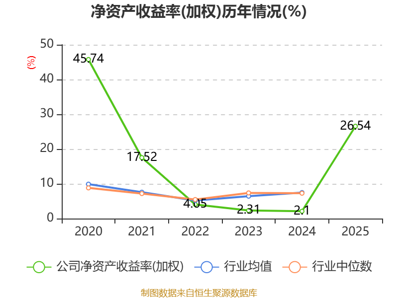 数据显示,2025年公司加权平均净资产收益率为26.54%,较上年同期上升24.44个百分点。公司2025年投入资本回报率为22.96%,较上年同期上升22.64个百分点。