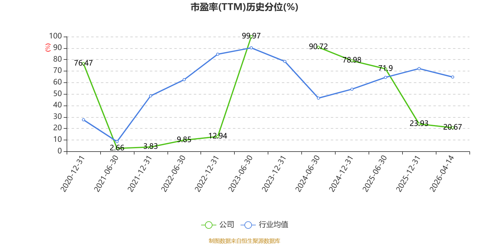 市盈率、市净率为负时,不显示当期分位数,会导致折线图中断。