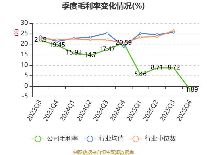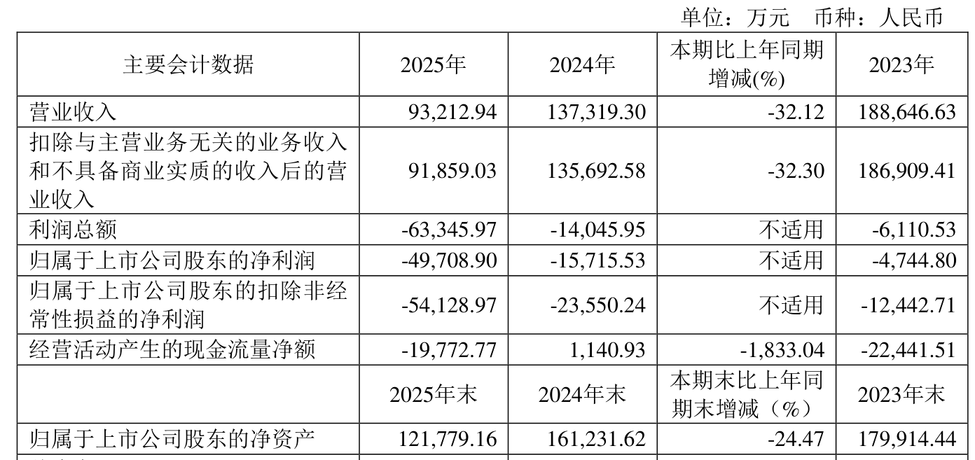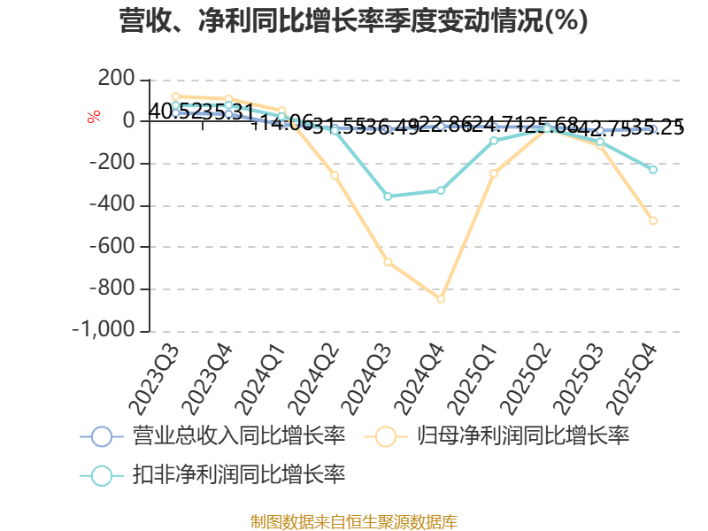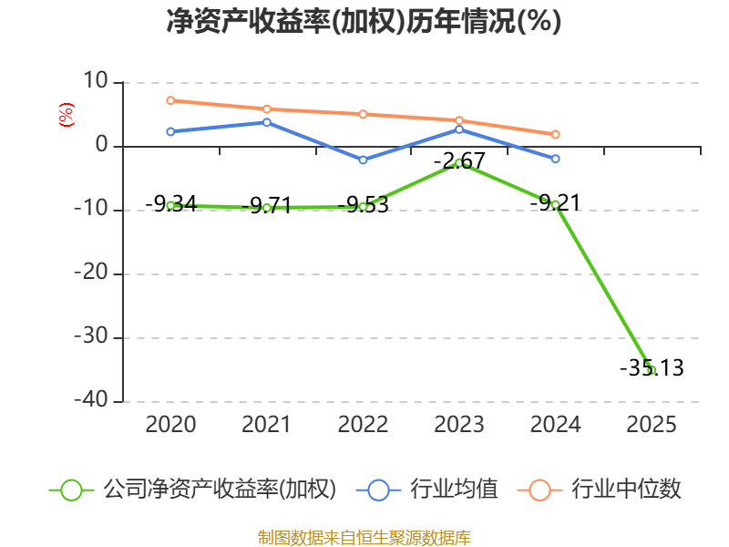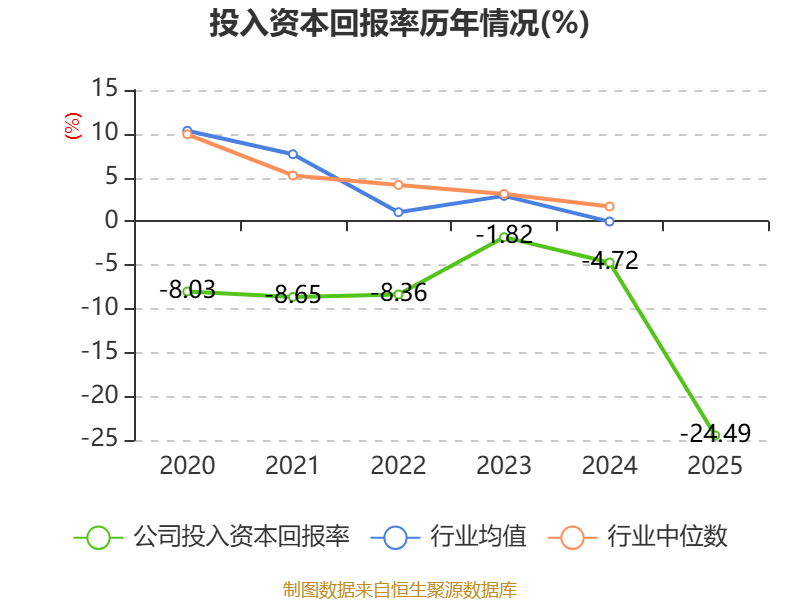数据显示,2025年公司加权平均净资产收益率为-35.13%,较上年同期下降25.92个百分点。公司2025年投入资本回报率为-24.49%,较上年同期下降19.77个百分点。