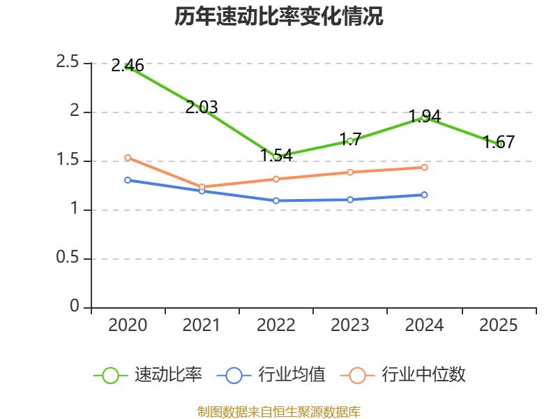 2025年,公司流动比率为1.88,速动比率为1.67。