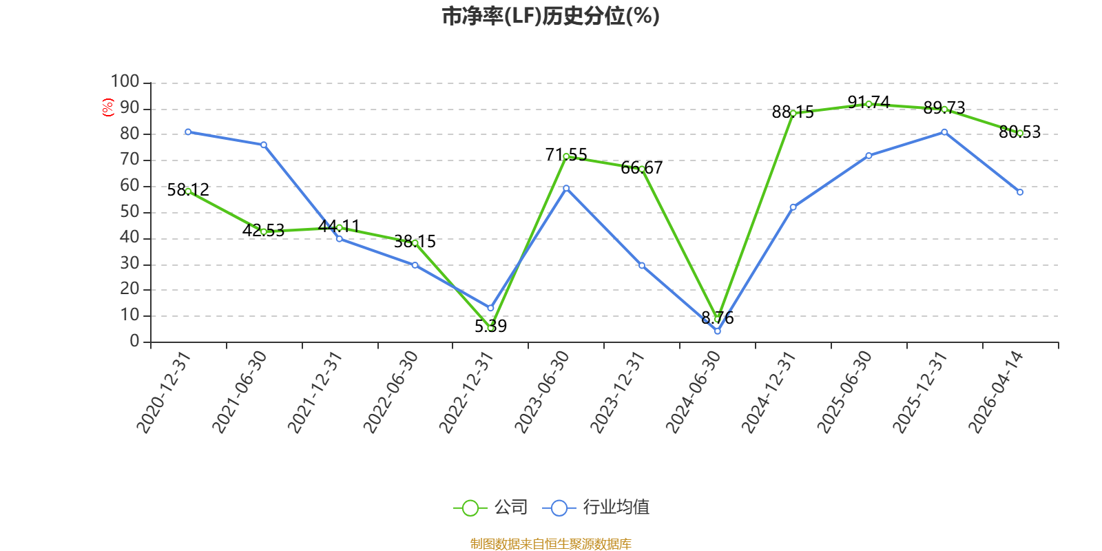 市盈率、市净率为负时,不显示当期分位数,会导致折线图中断。