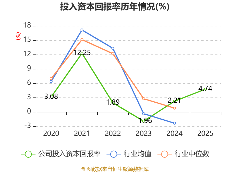 数据显示,2025年公司加权平均净资产收益率为6.62%,较上年同期上升3.92个百分点。公司2025年投入资本回报率为4.74%,较上年同期上升2.53个百分点。
