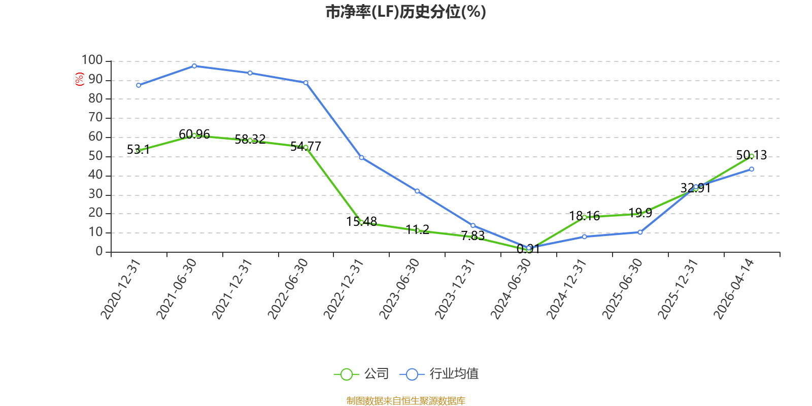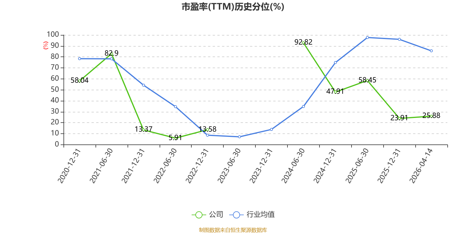 市盈率、市净率为负时,不显示当期分位数,会导致折线图中断。