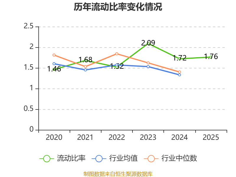2025年,公司流动比率为1.76,速动比率为1.12。