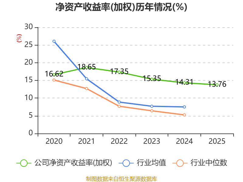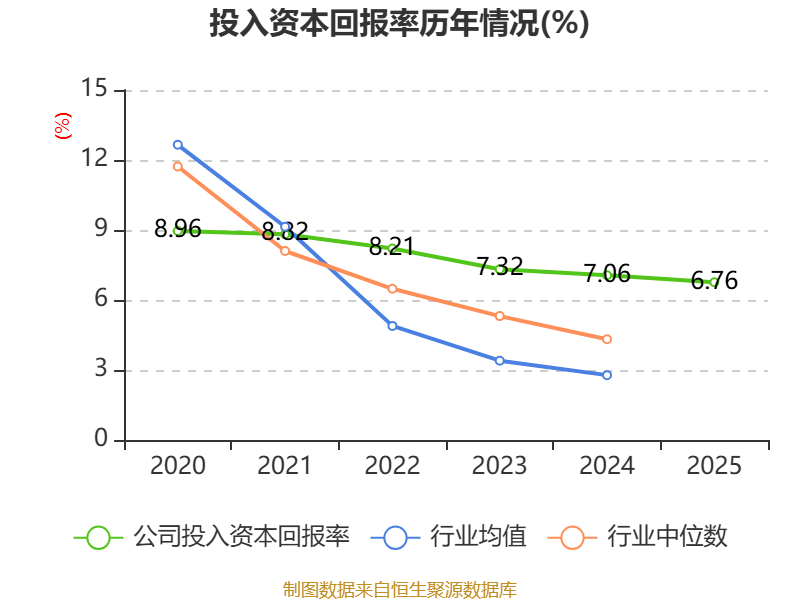 数据显示,2025年公司加权平均净资产收益率为13.76%,较上年同期下降0.55个百分点。公司2025年投入资本回报率为6.76%,较上年同期下降0.3个百分点。