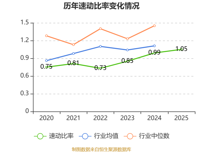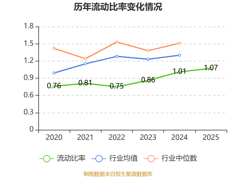 2025年,公司流动比率为1.07,速动比率为1.05。