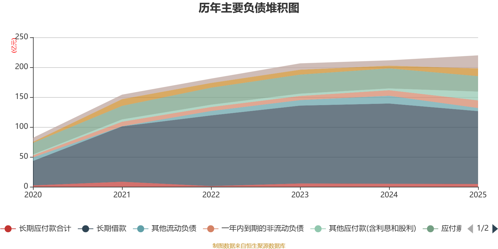 负债重大变化方面,截至2025年末,公司长期借款较上年末减少9.24%,占公司总资产比重下降6.3个百分点;其他应付款(含利息和股利)较上年末增加379.77%,占公司总资产比重上升3.55个百分点;应付债券占公司总资产的3.07%,上年末为0;应付票据及应付账款较上年末减少22.83%,占公司总资产比重下降2.98个百分点。