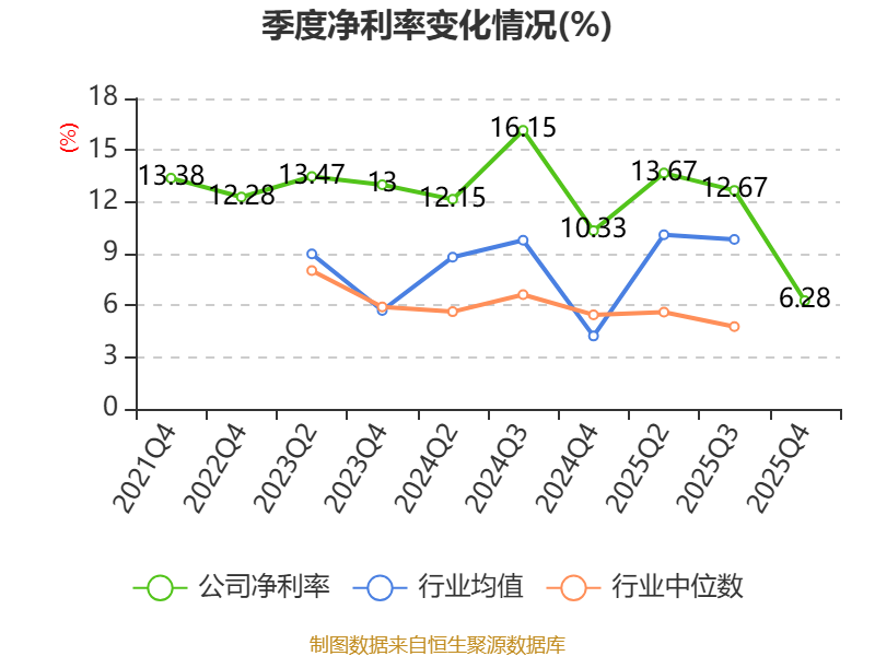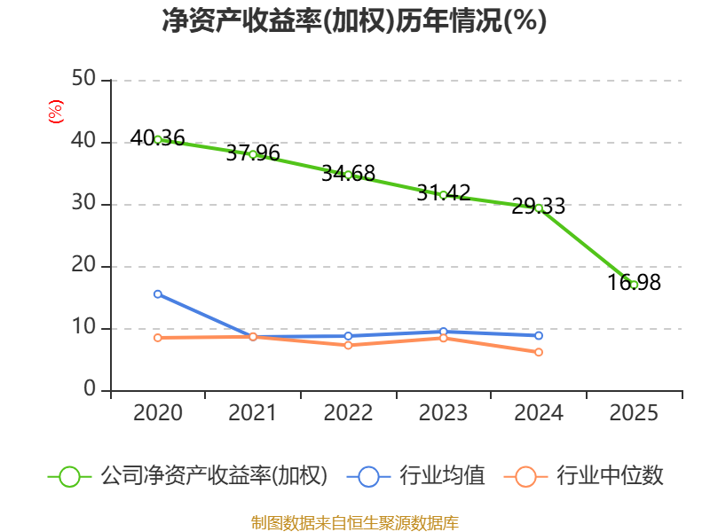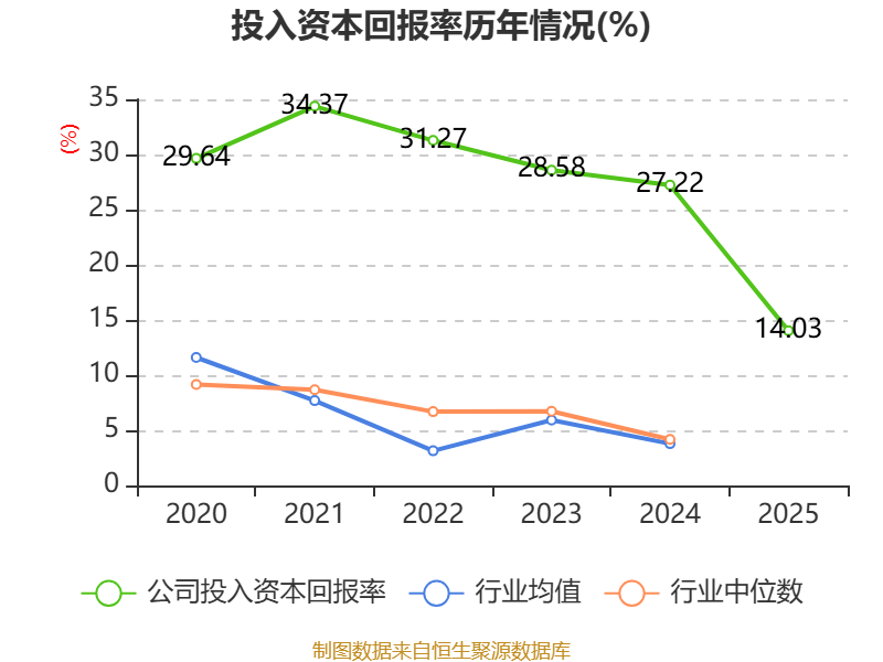 数据显示,2025年公司加权平均净资产收益率为16.98%,较上年同期下降12.35个百分点。公司2025年投入资本回报率为14.03%,较上年同期下降13.19个百分点。
