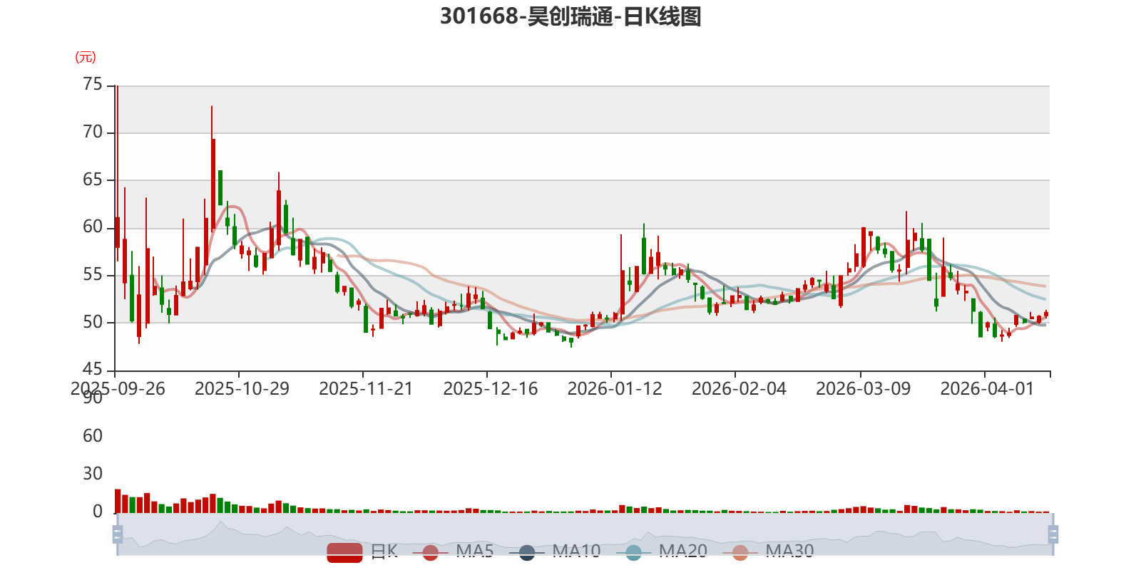 以4月14日收盘价计算,昊创瑞通目前市盈率(TTM)约为53.53倍,市净率(LF)约5.6倍,市销率(TTM)约6.28倍。
