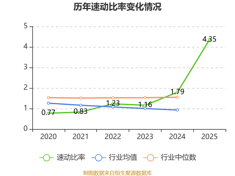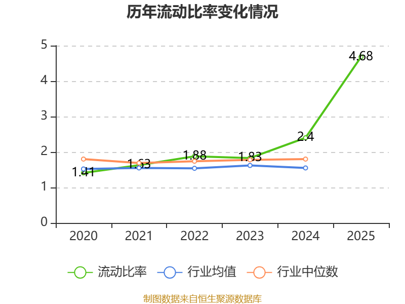 2025年,公司流动比率为4.68,速动比率为4.35。
