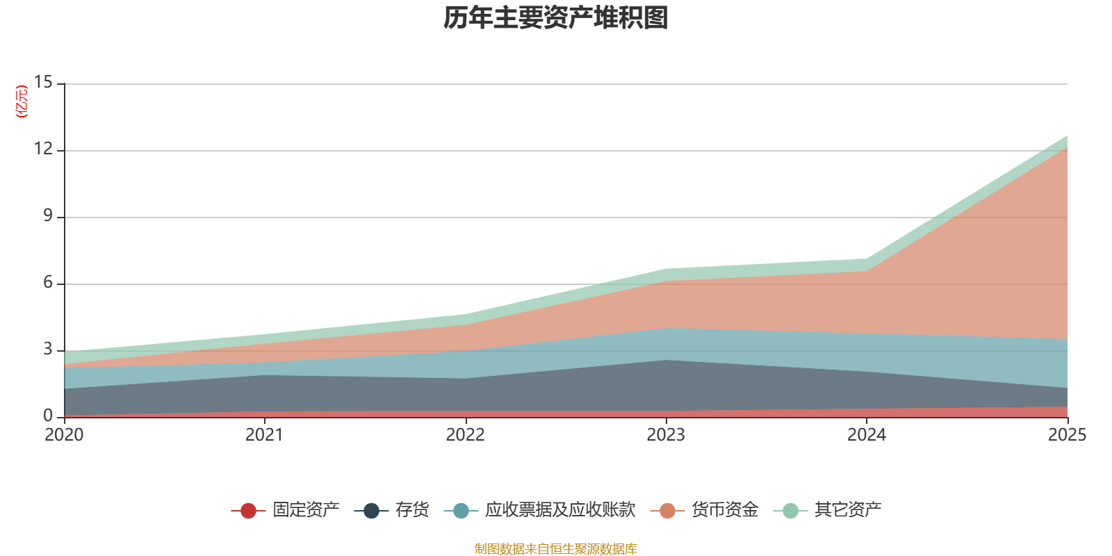 资产重大变化方面,截至2025年末,公司货币资金较上年末增加208.72%,占公司总资产比重上升28.9个百分点;存货较上年末减少49.53%,占公司总资产比重下降16.81个百分点;应收票据及应收账款较上年末增加28.23%,占公司总资产比重下降6.75个百分点;固定资产较上年末增加24.85%,占公司总资产比重下降1.54个百分点。