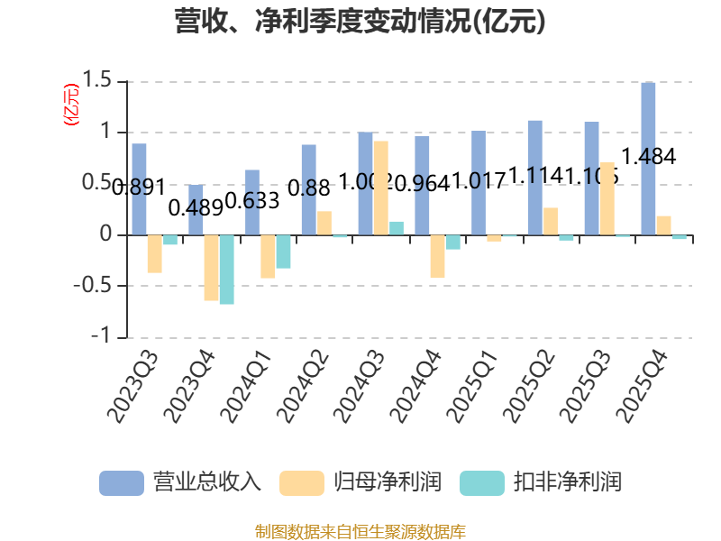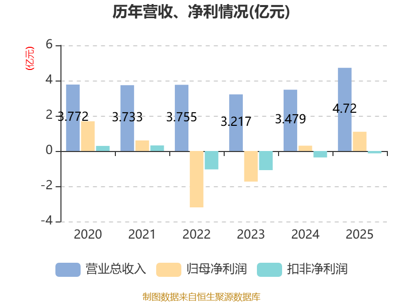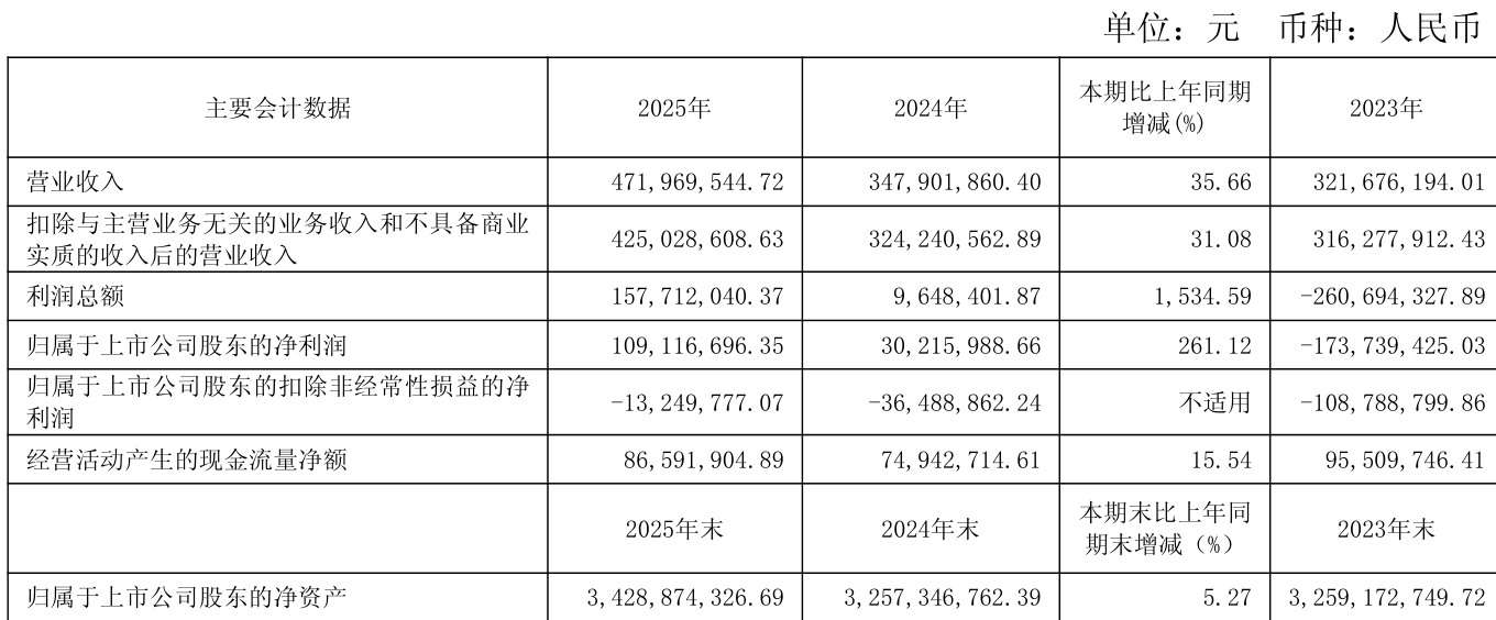 中证智能财讯综艺股份(600770)4月15日披露2025年年度报告。2025年,公司实现营业总收入4.72亿元,同比增长35.66%;归母净利润1.09亿元,同比增长261.12%;扣非净利润亏损1324.98万元,上年同期亏损3648.89万元;经营活动产生的现金流量净额为8659.19万元,同比增长15.54%;报告期内,综艺股份基本每股收益为0.0839元,加权平均净资产收益率为3.26%。