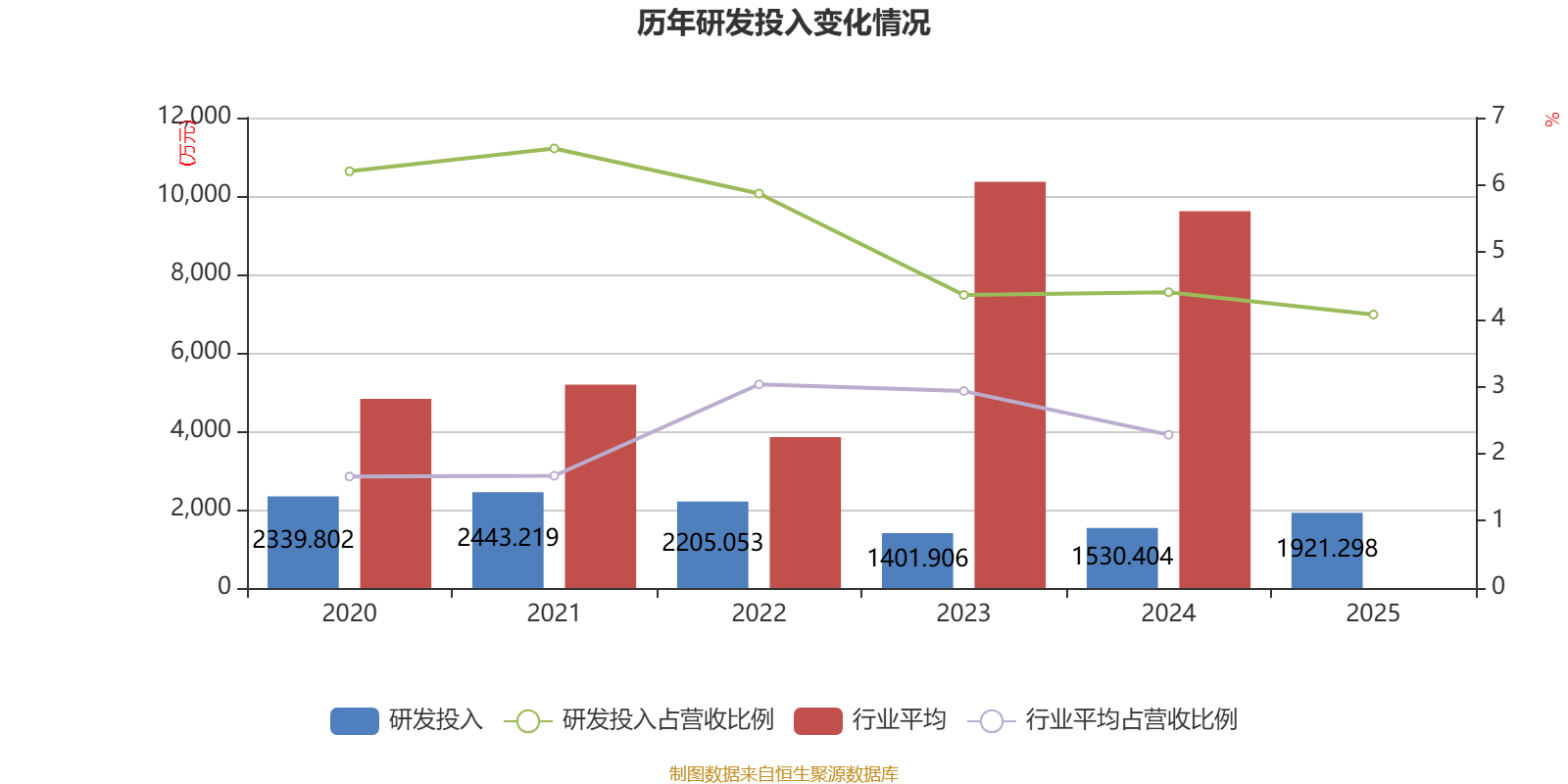2025年全年,公司研发投入金额为1921.3万元,同比增长25.54%;研发投入占营业收入比例为4.07%,相比上年同期下降0.33个百分点。此外,公司全年研发投入资本化率为0%。
