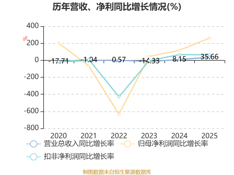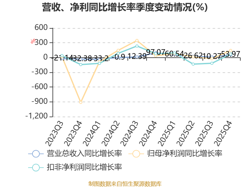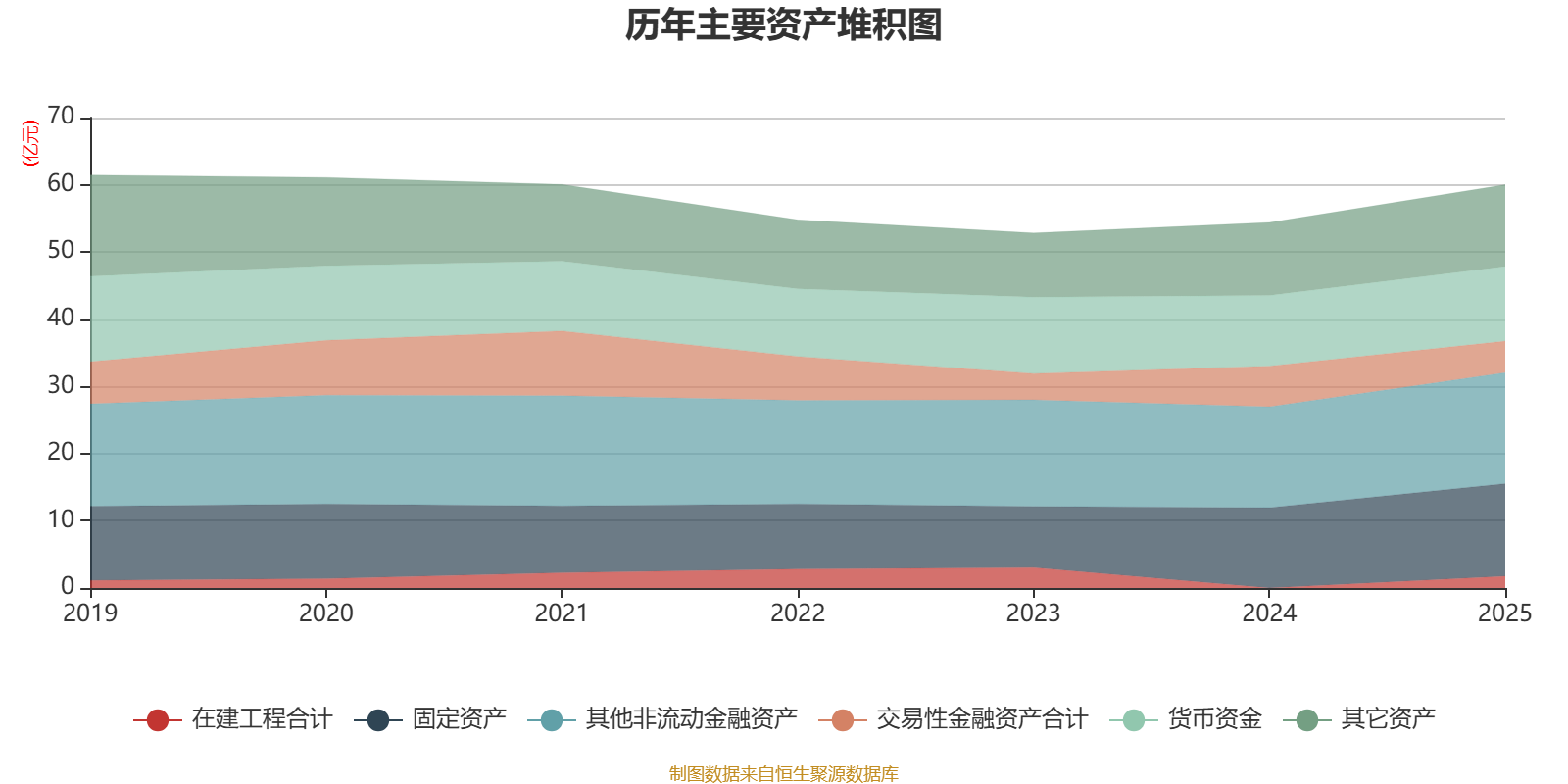 资产重大变化方面,截至2025年末,公司交易性金融资产合计较上年末减少22.41%,占公司总资产比重下降3.3个百分点;在建工程合计较上年末增加24590.54%,占公司总资产比重上升2.93个百分点;应收票据及应收账款较上年末增加51.58%,占公司总资产比重上升1.29个百分点;长期股权投资较上年末减少26.59%,占公司总资产比重下降1.14个百分点。