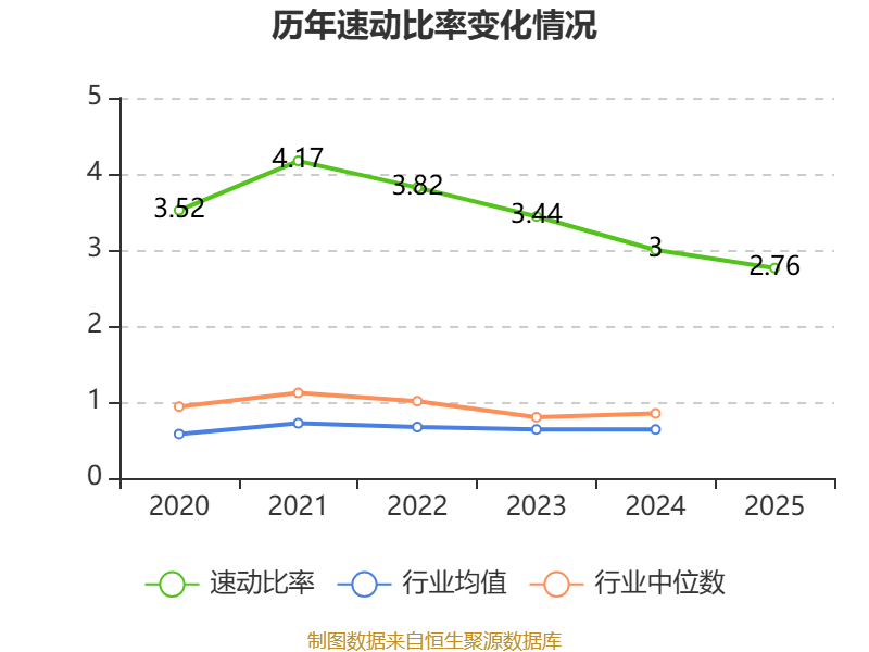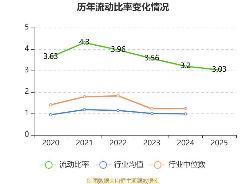 2025年,公司流动比率为3.03,速动比率为2.76。